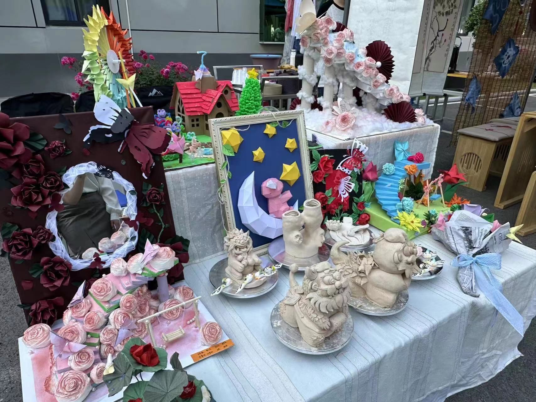 本次集市摊点品类丰富,既有传统非遗文化的展示,如茶文化、书画文创、扎染、剪纸、糖人制作、团扇绘画等,这些摊点不仅展示了传统文化的精湛技艺,更让师生们深刻感受到中华民族文化的博大精深。同时,集市还设置了众多趣味摊点,如娃娃套圈、气枪打靶、手绘波波球、陶艺涂鸦等,这些互动性强、创意十足的摊点吸引了众多师生驻足体验,欢声笑语此起彼伏。