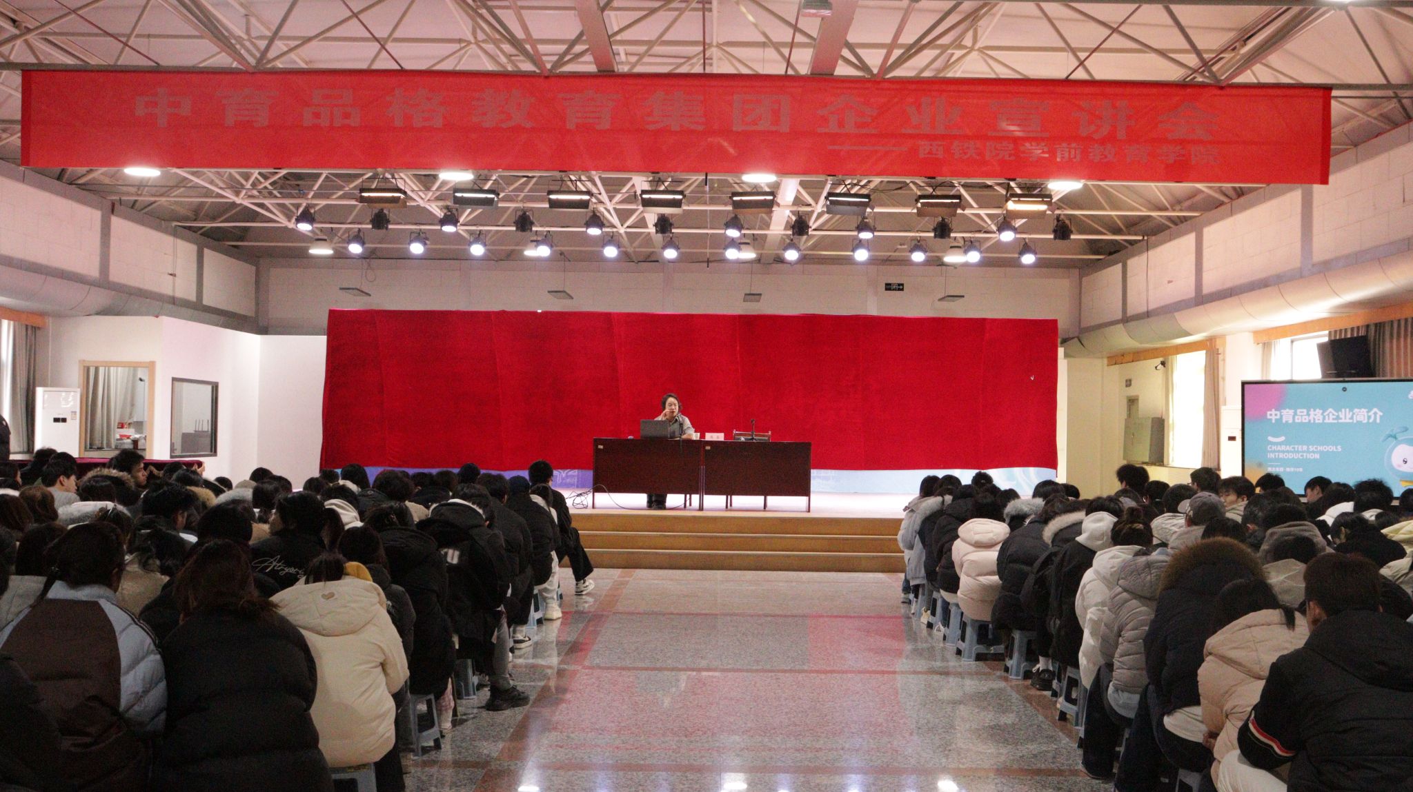 12月24日,学前教育学院携手中育品格教育集团举办专场宣讲会。讲座在龙首校区实训中心举办,学前教育学院师生400余人参与了讲座,中育品格教育集团人力资源部部长周晶担任主旨宣讲。